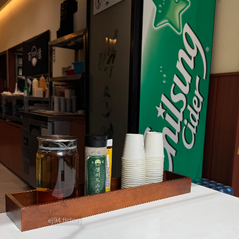 한쪽엔 물과 샐러드소스랑 고추냉이(기억이,, 잘ㅋㅋ)가 준비되어 있어서